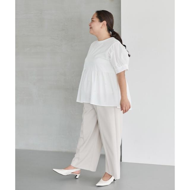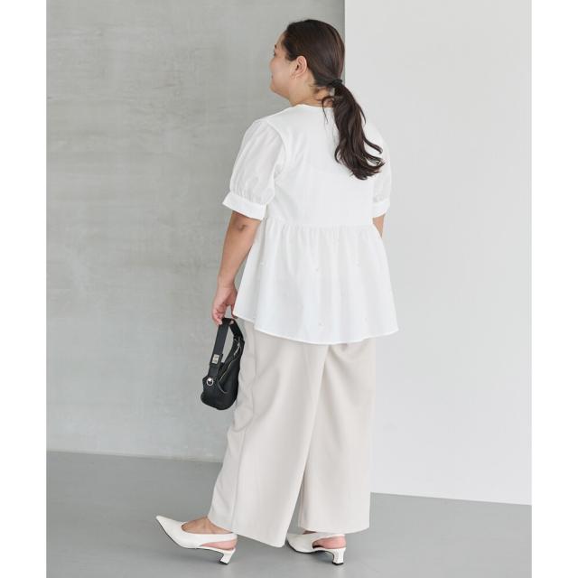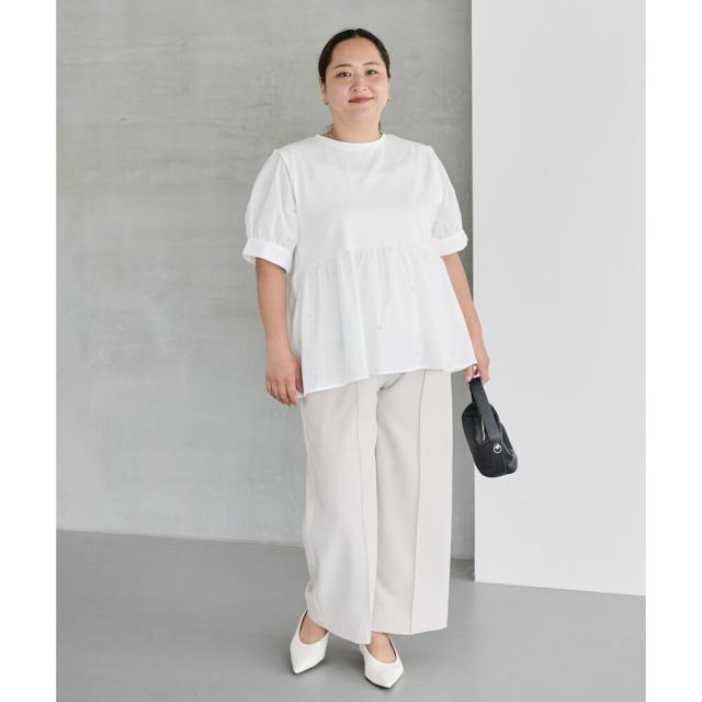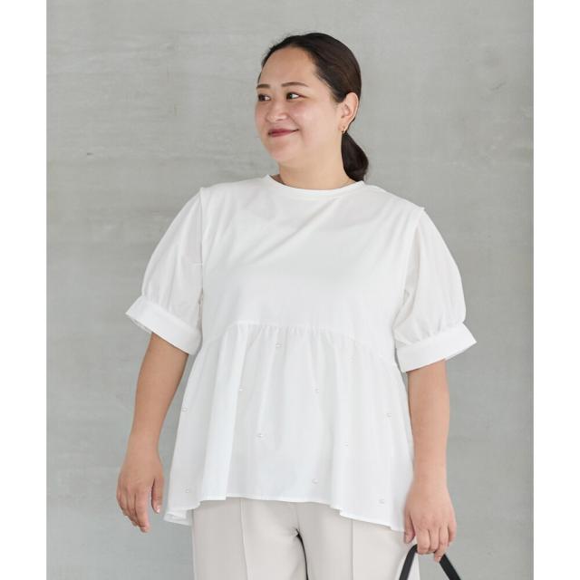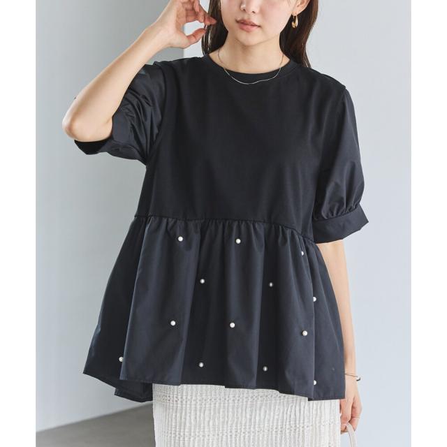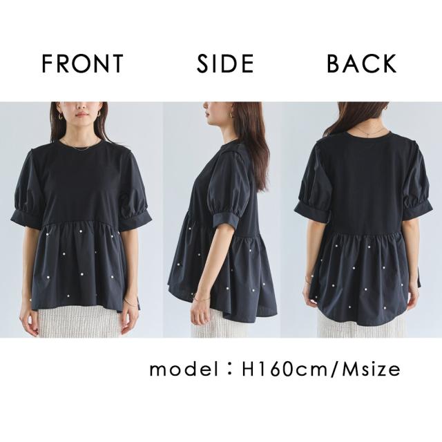 【洗える】パールペプラムプルオーバー