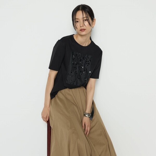 シアー感のある素材にきらりと光るスパンコールの刺繍を施しています。