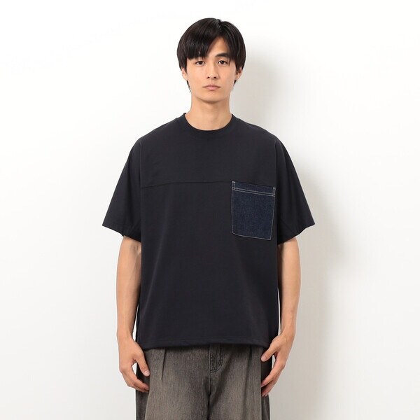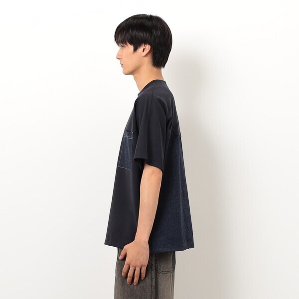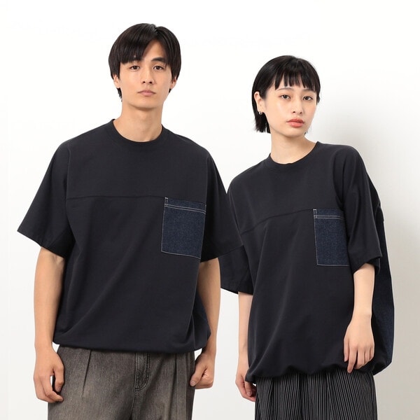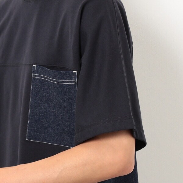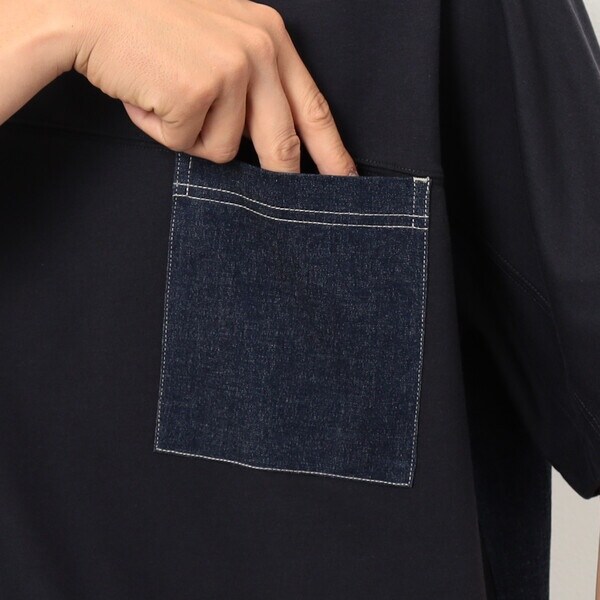 胸ポケットと後身頃にデニム生地を使いアクセントにしています。