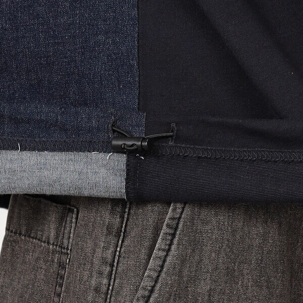 裾はドローストリングで絞れるようにしてあるのでコーディネートに合わせてシルエット変化をお楽しみいただけます。