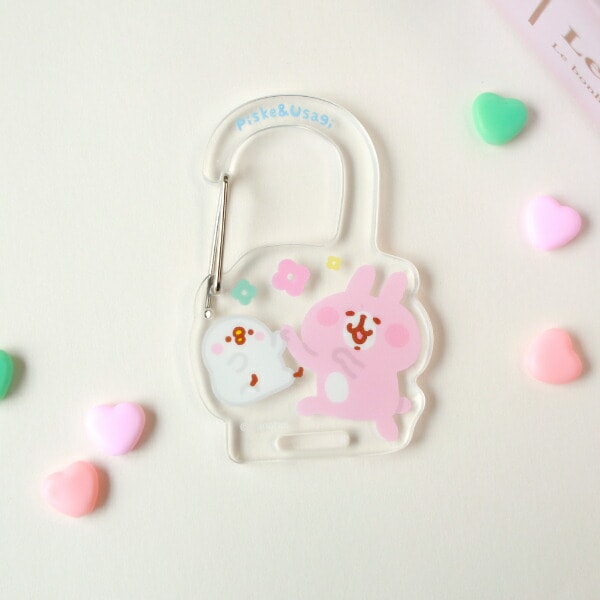 ピスケとうさぎのかわいいアクリルカラビナです。