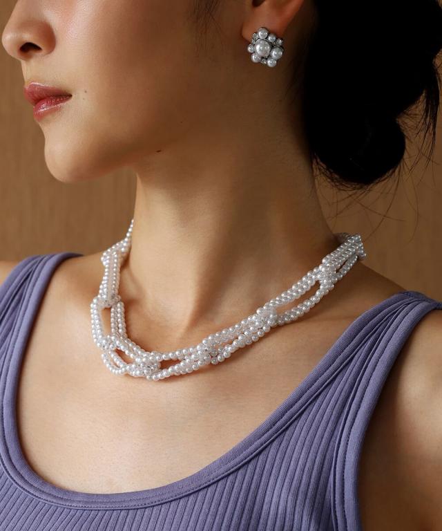 ●パールをチェーンのように組み上げた華やかなネックレス