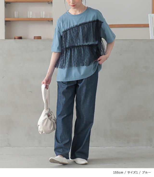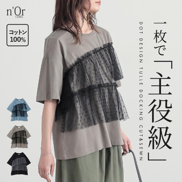 Tシャツ レディース トップス 半袖 カットソー チュール ドット柄 無地 綿100% クルーネック アシンメトリー アシメ 二の腕カバー 春 夏 【TP】 プルオーバー n'OrLABEL ノア—ルレーベル 大人女子 大人可愛い お洒落可愛い 大人カジュアル ベーシック ラフ オフィスカジュアル 上品 きれいめ ナチュラル ショート丈 ミディ丈 ミドル丈 ドロップショルダー ギャザー 水玉柄 配色 コットン100% ドッキング シースルー シアー 透け感 レイヤード 重ね着 おうちで洗える 伸縮性 薄手 カジュアル シンプル キレカジ フェミニン ガーリー ゆったり ゆる 楽ちん Sサイズ Mサイズ Lサイズ LLサイズ 3Lサイズ XLサイズ ぽっちゃり 体型カバー 大きいサイズ プラスサイズ 10代 20代 30代 40代 50代 60代 低身長 高身長 女子会 オフィス 通勤 通学 お買い物 お出掛け 旅行 リゾート レジャー おしゃれ お洒落 トレンド 流行 osharewalker オシャレウォーカー おしゃれうぉーかー ブルー 青 グリーン 緑 カーキ ブラック 黒[ID]12tn0ya