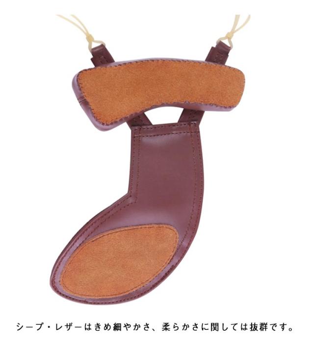 | 羊革 あご当てカバー バイオリン4/4-3/4 シープ・レザーはきめ細やかさ、柔らかさに関しては抜群です。 あご当ての部分だけでなく金属クランプも覆いかぶさるので金属アレルギーに悩んでらっしゃ方にも最適です! | |