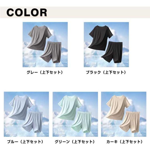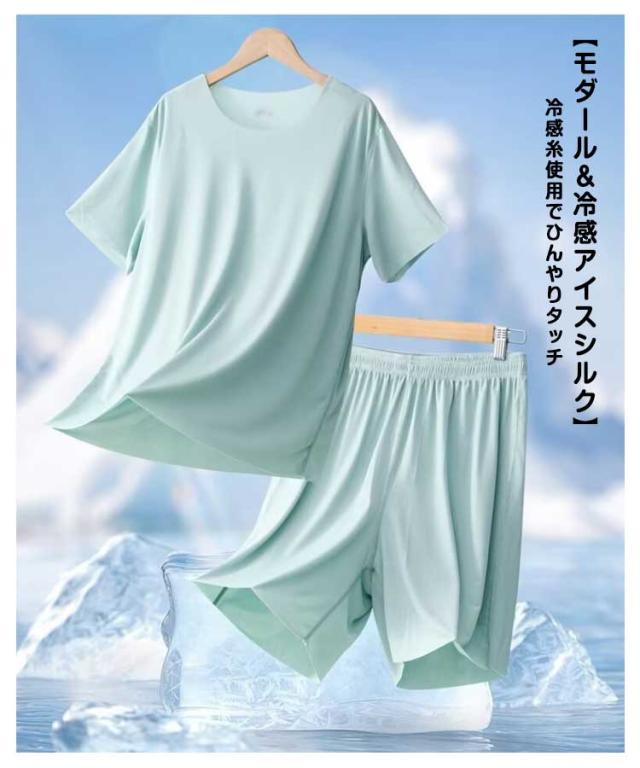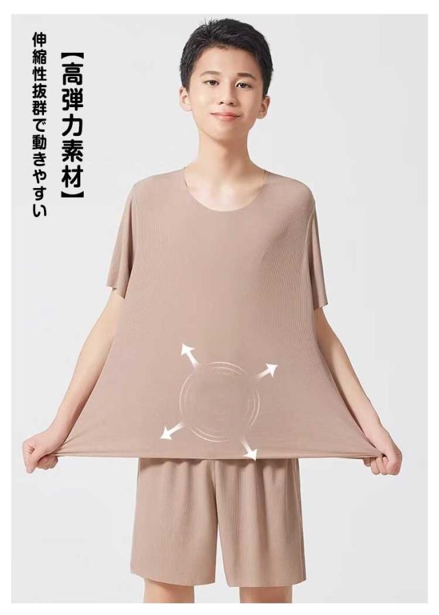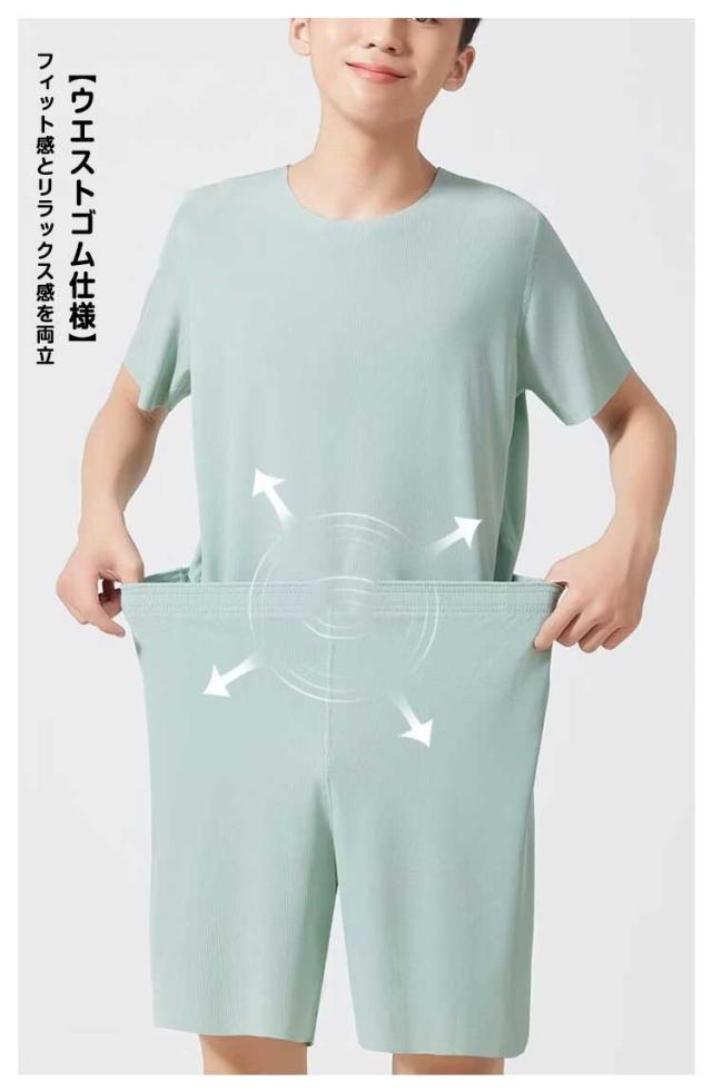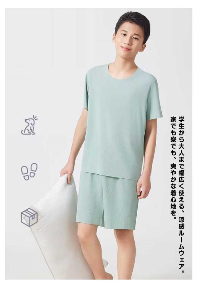 パジャマ セットアップ メンズ ジュニア 春夏 半袖 Tシャツ+五分丈パンツ ルームウェア 上下セット シンプル 無地 冷感 ひんやり ナイトウェア 寝巻き 部屋着 動きやすい ゆったり 大きいサイズ