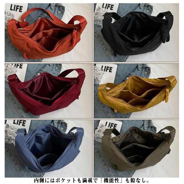 ショルダーバッグ レディース ナイロン 防水 ナイロンバッグ 軽量 小さめ 大容量 斜めがけバッグ 2way 肩掛け 斜めがけ カバン シンプル 三日月型 韓国 女性 バッグ 旅行 おしゃれ ファスナー付き 撥水 ポケット多い サブバッグ 修学旅行 ギフト 30代 40代