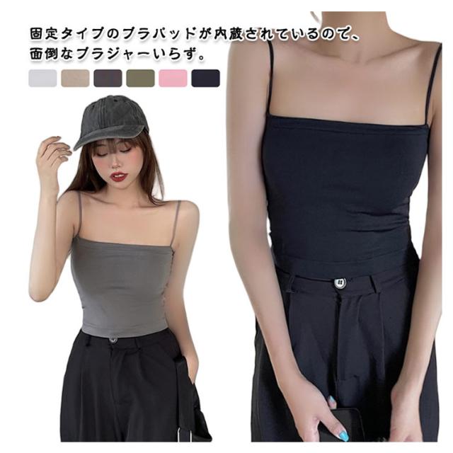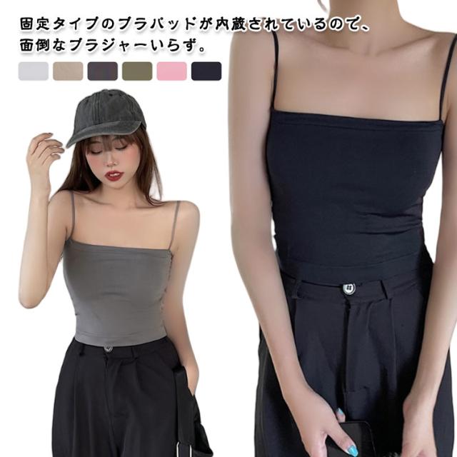 キャミソール レディース 夏 インナー カップ付きキャミソール ブラトップ パッド付き ノンワイヤー 細ストラップ ロング 薄手 無地 シンプル おしゃれ ブラキャミソール 重ね着 夏用 カジュアルインナー フィット感