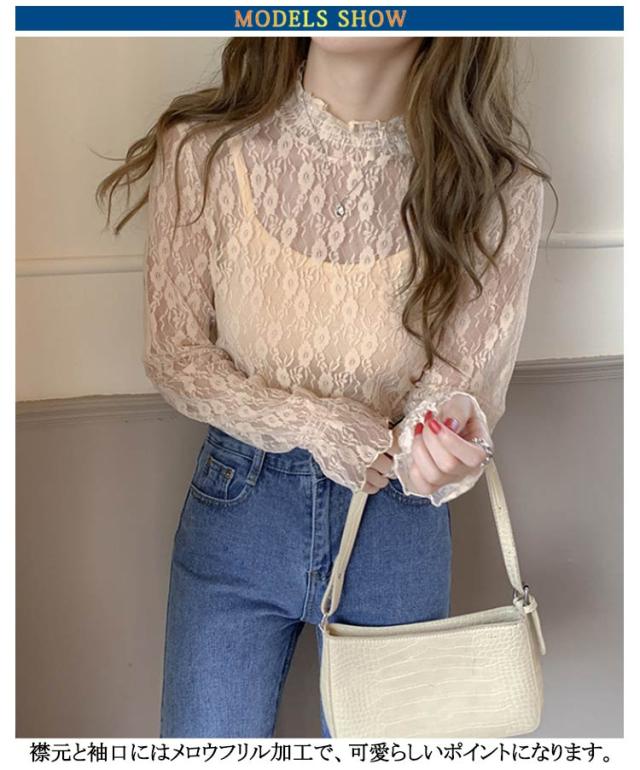 レディース シアートップス 春 トップス タートルネック レース シャツ シースルー 長袖 シーアーブラウス シアー タートル チュール セクシー 透け感 肌透け ハイネック メッシュ カットソー オフィス レイヤード ドット柄 紫外線対策 通勤