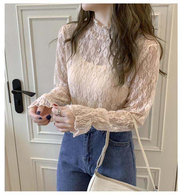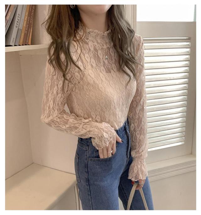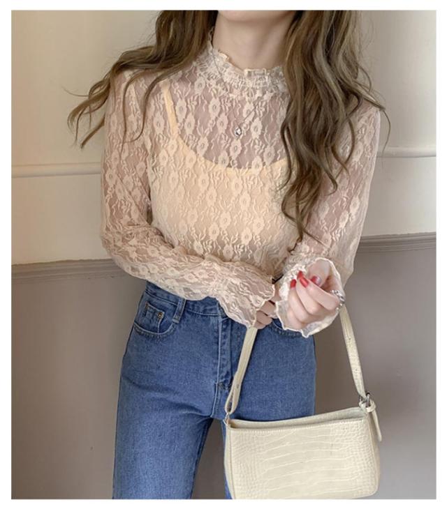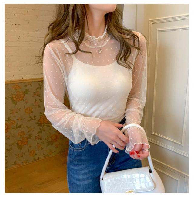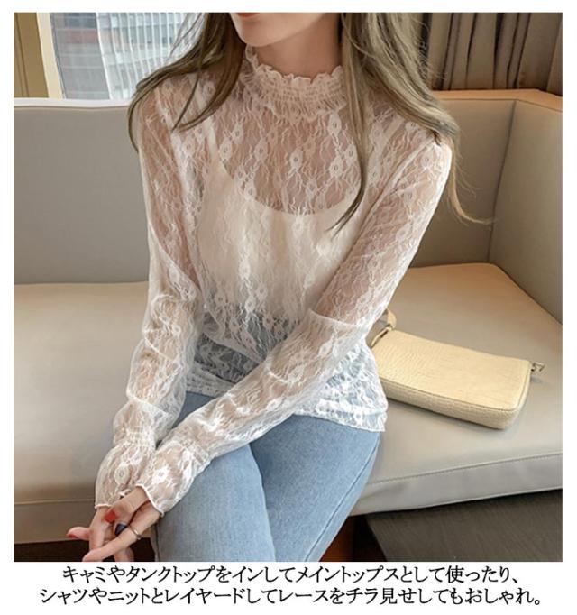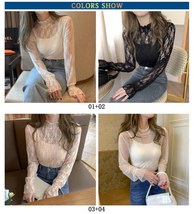 レディース シアートップス 春 トップス タートルネック 2枚組 レース シャツ シースルー 長袖 シーアーブラウス シアー タートル チュール セクシー 透け感 肌透け ハイネック メッシュ カットソー オフィス レイヤード ドット柄 紫外線対策 通勤