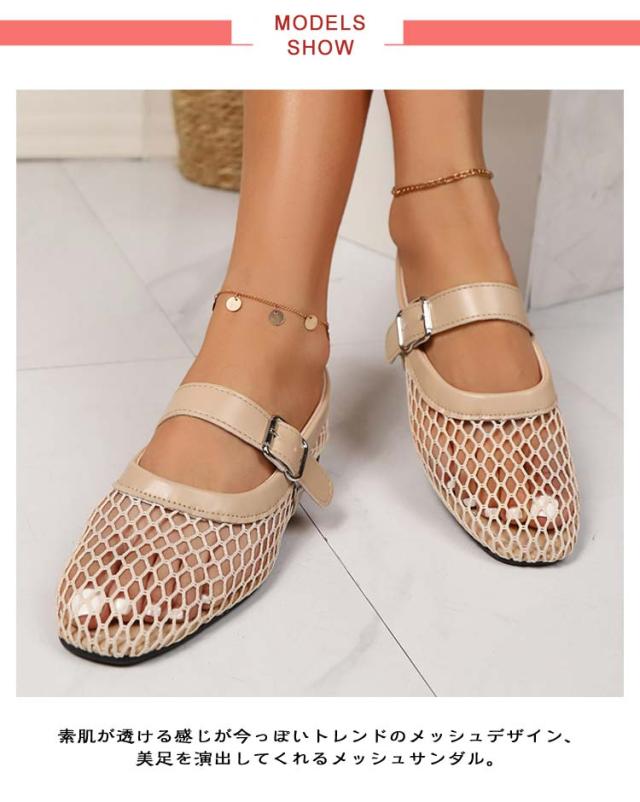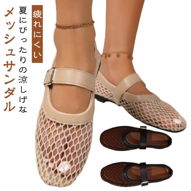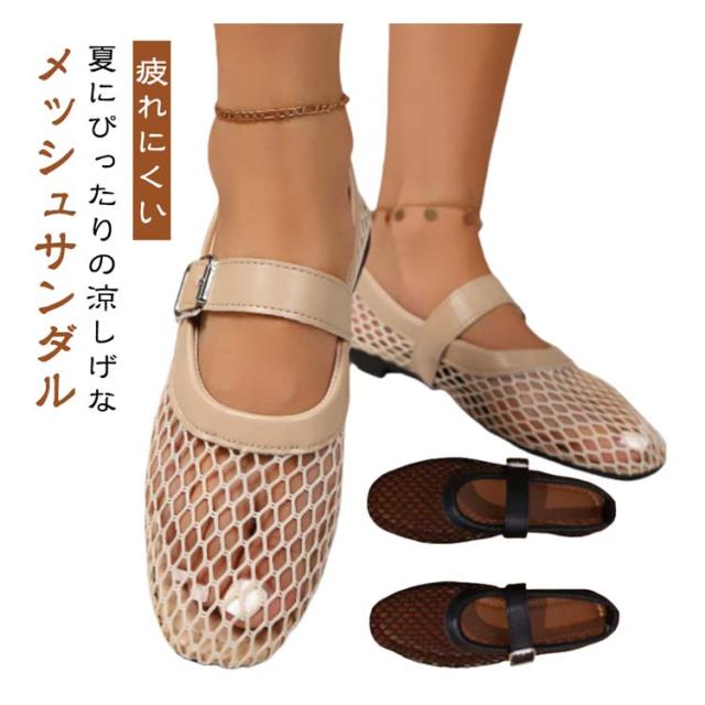 サンダル メッシュ パンプス レディース ぺたんこ フラットシューズ 夏コーデサンダル サマーシューズ メッシュサンダル ストラップ サンダル 涼しい スリッパ 春夏 歩きやすい 疲れにくい 痛くない パーティー ビーチ 海
