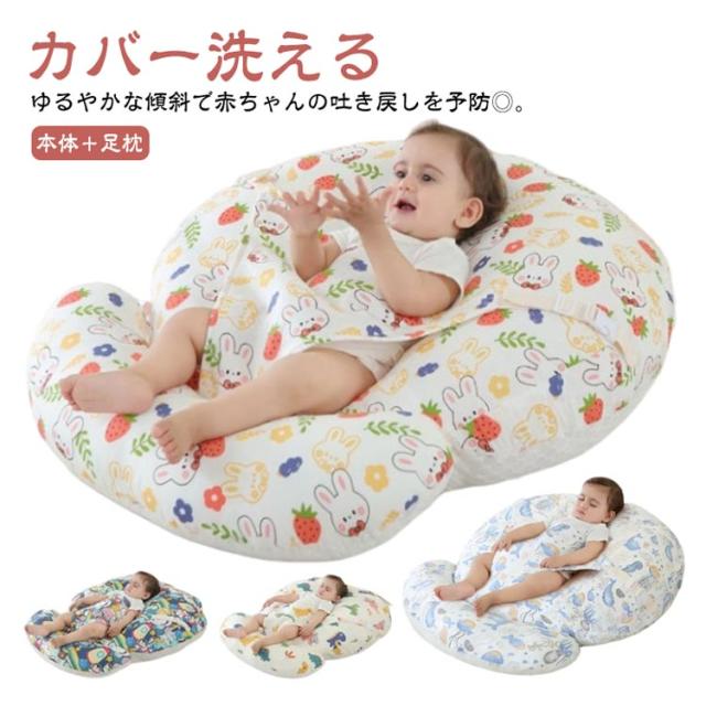 吐き戻し防止 授乳クッション へたらない 吐き戻し軽減 女の子 男の子 背中スイッチ 赤ちゃん 足枕付き カバー洗える ベビーベッド ベビークッション 寝かしつけ お昼寝クッション Cカーブベッド 枕 出産祝い 授乳 出産祝い 送無