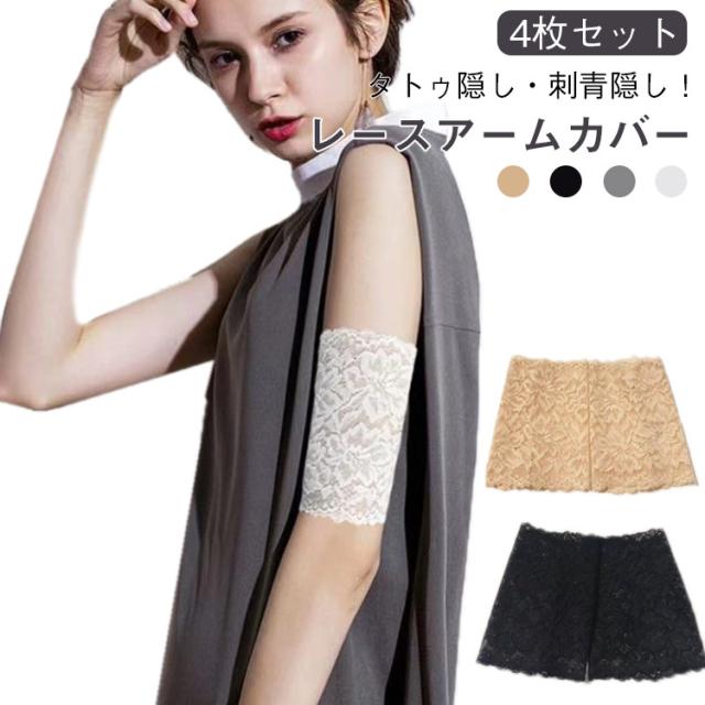 4枚セット タトゥー隠し 刺青隠し レースアームカバー UVカット 日焼け対策 ストレッチ tatooかくし 傷跡かくし レディース 傷跡隠す アームガード アームウォーマー ラッシュガード 通気性 かわいい 二の腕サポーター 肌色 黒 送料無料