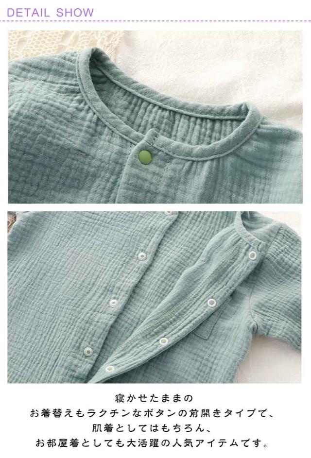 | 帽子付き、春夏用ロンパースです。 ガーゼ綿素材で汗をしっかり吸収し、オールシーズン快適です。 寝かせたままのお着替えもラクチンなボタンの前開きタイプで、肌着としてはもちろん、お部屋着としても大活躍の人気アイテムです。 | |