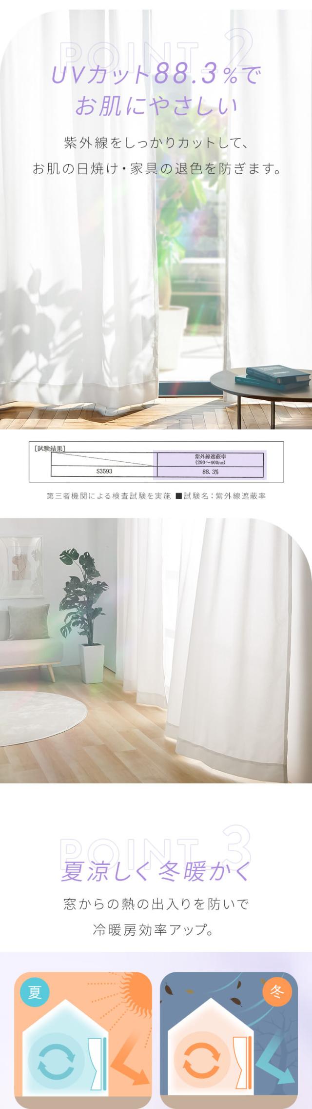 (検索用:遮像 UVカット 遮熱 断熱 省エネ レースカーテン カーテン 2枚組 節電 幅100cm )