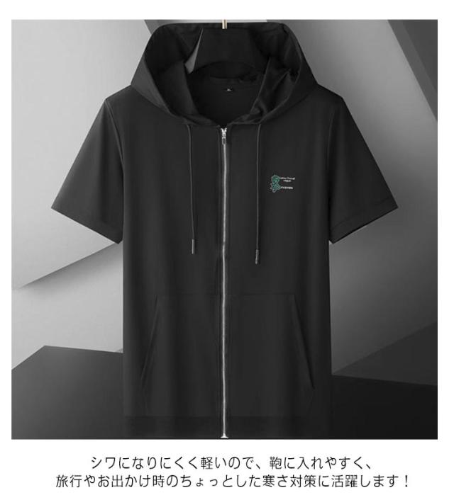 | M-3XL シンプルで使いやすい半袖パーカーです。 さらりとした素材感が、汗ばむ季節に着易く、汚れてお洗濯をしてもすぐに乾く! シワになりにくく軽いので、鞄に入れやすく、旅行やお出かけ時のちょっとした寒さ対策に活躍します! 抜群の伸縮性があるので、動きにも強く、ストレスなく快適に着用して頂けます。 タウンウェアとしてはもちろん、ライトなアクティブウェアまで着回しの出来る便利なアイテムです。 | |