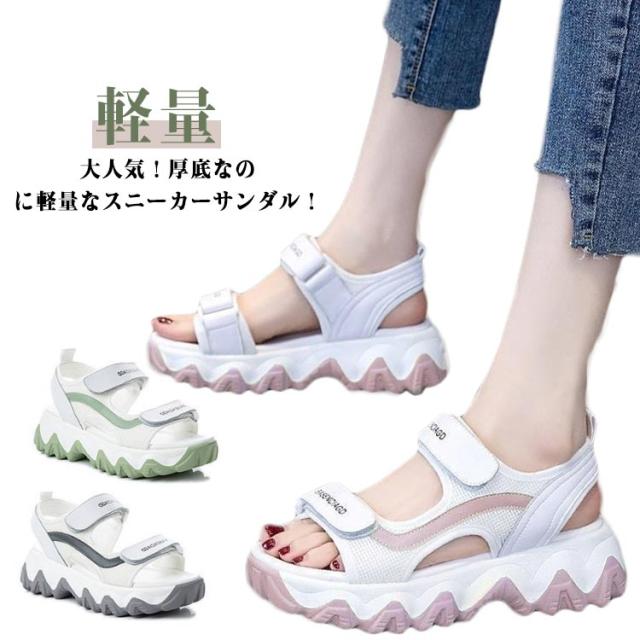 スニーカーサンダル レディース 通勤 美脚 防滑 柔らかいクッション スポーツサンダル 厚底サンダル スニーカーサンダル マジックテープ 脚長 軽量 厚底 おしゃれ サンダル ビーチサンダル 痛くない 旅行 アウトドア