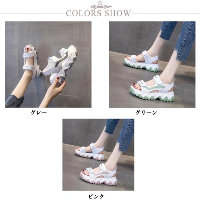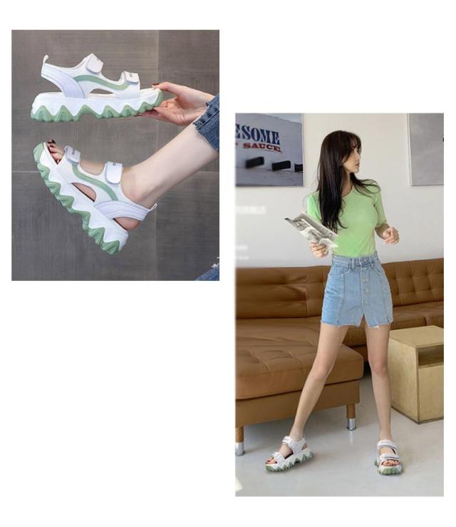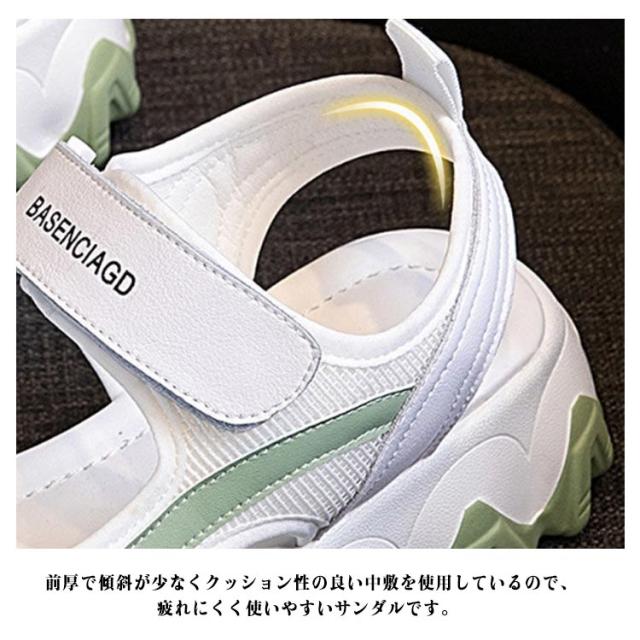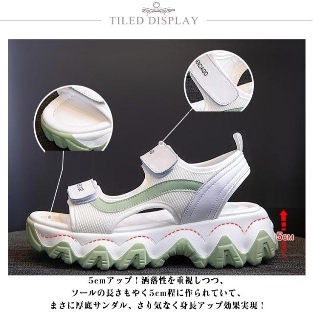 | 大人気!厚底なのに軽量なスニーカーサンダル! シンプルでぽっちゃりとした愛らしいフォルム! 背の低い方でもこのサンダルで視界良好!! 前厚で傾斜が少なくクッション性の良い中敷を使用しているので、疲れにくく使いやすいサンダルです。 5cmアップ!洒落性を重視しつつ、ソールの長さもやく5cm程に作られていて、まさに厚底サンダル、さり気なく身長アップ効果実現! つま先と足首のところにはマジックテープが備い、お客様の足に合わせて調整できます。踵の部分にもストラップがあり、突然の履き脱げや横ズレにならない安定感のある履き心地を実現します。 ソールは滑り止め設計を採用しており、濡れた滑りやすい地面でも屋外でも歩行がより安定し、滑りを防ぎます。全体的な感覚が軽くなり、より自然で快適な歩行が可能になります。 プールや遊園地・テーマパークなど、外で思い切り遊ぶ春夏レジャーや海外旅行は、この歩きやすい厚底サンダルで決まり。 | |
