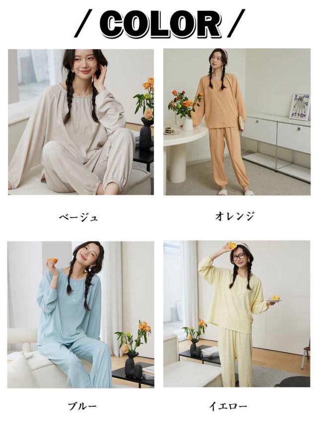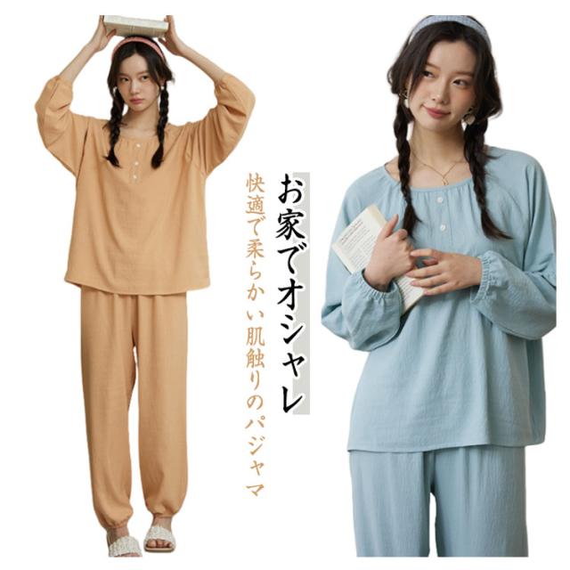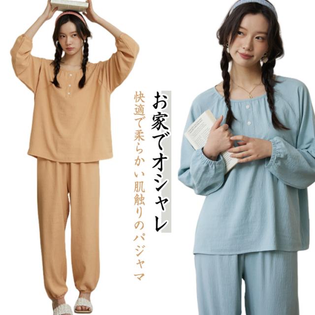 パジャマ 夏新作 レディース 長袖 ルームウェア 上下セット ラウンドネック 涼しい かわいい 夏用 寝間着 パジャマ ナイトウェア シンプル 可愛い お洒落 カジュアル 春 夏 秋 薄手 無地 快適 送料無料