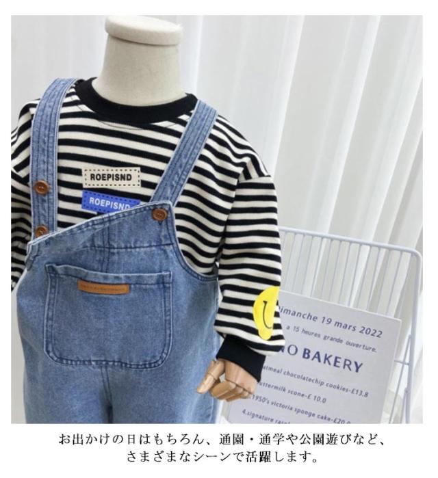 | 【90〜140cm】【デニムオーバーオール】【男の子も女の子も】 シンプルなデザインの定番デニムオーバーオールです。 いつものトップスと合わせるだけで、お出かけにもぴったりのオシャレコーデが完成します。 ゆとりのあるルーズシルエットはどんな動きも妨げないので、たくさん動くお子さまにも お出かけの日はもちろん、通園・通学や公園遊びなど、さまざまなシーンで活躍します。 | |