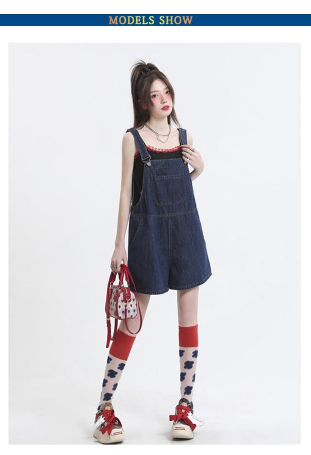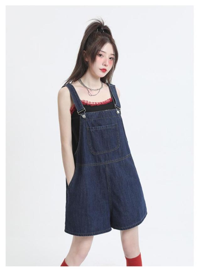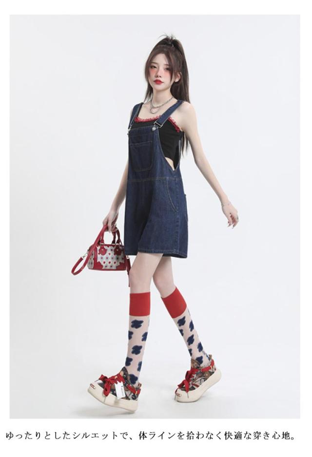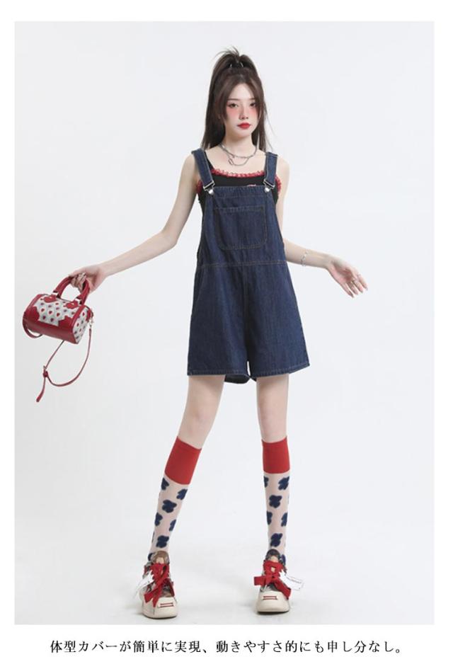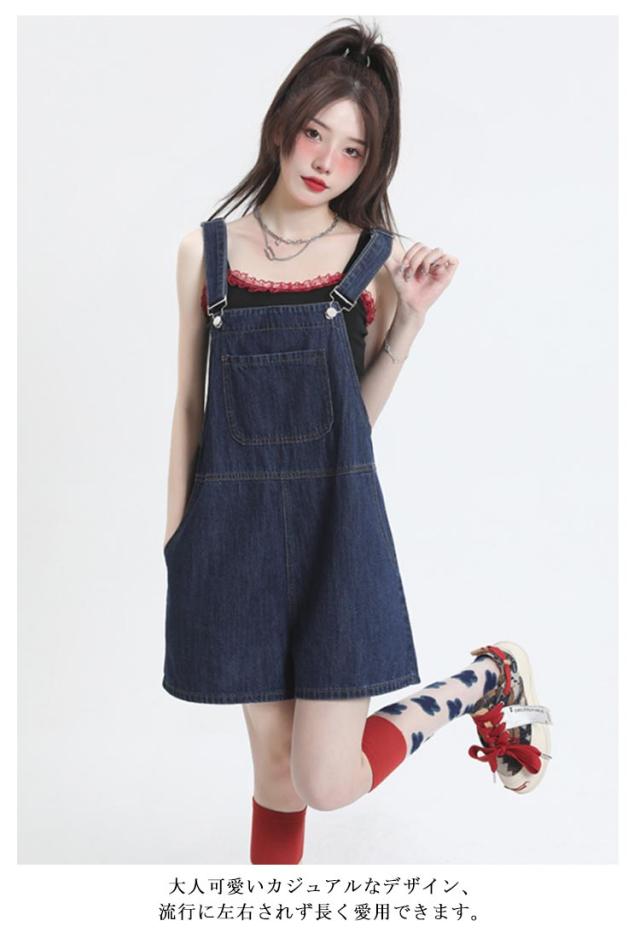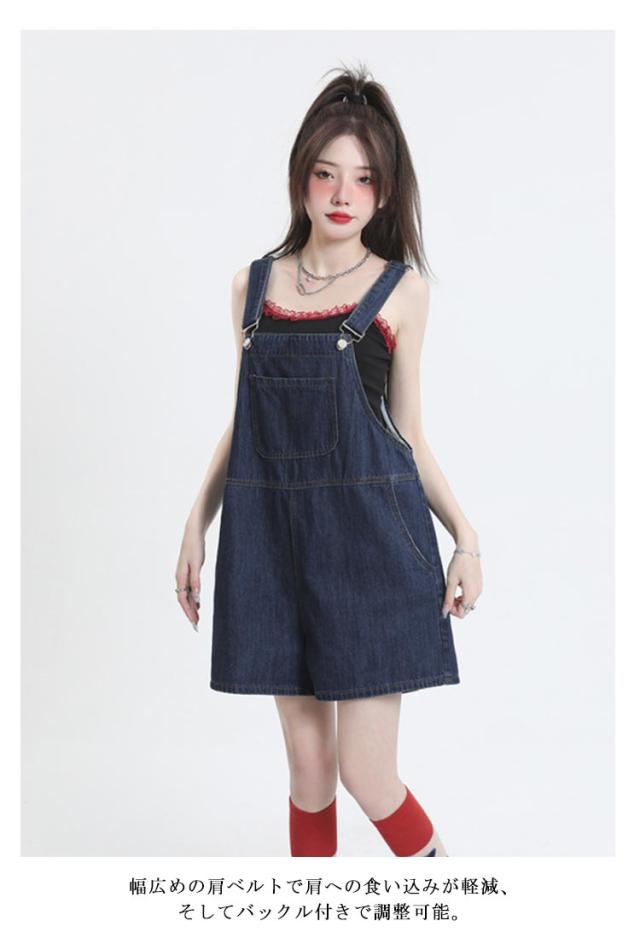 ショートパンツ ボトムス レディース デニム オーバーオール ハーフパンツ ゆったり カジュアル 無地 デニムパンツ ワイドパンツ 着痩せ 体型カバー サロペット 通勤 通学 女性
