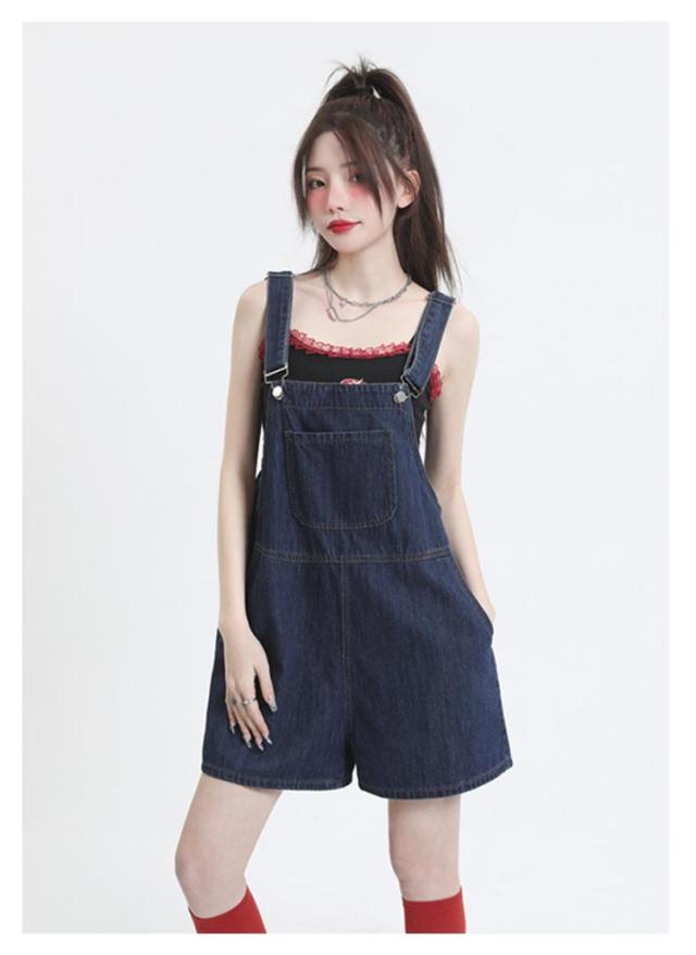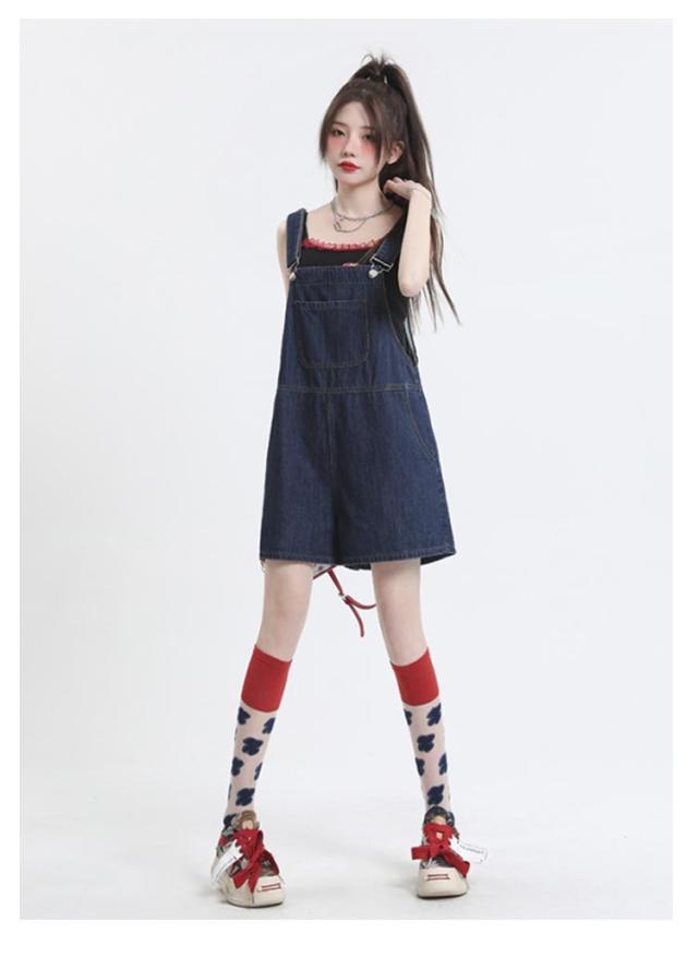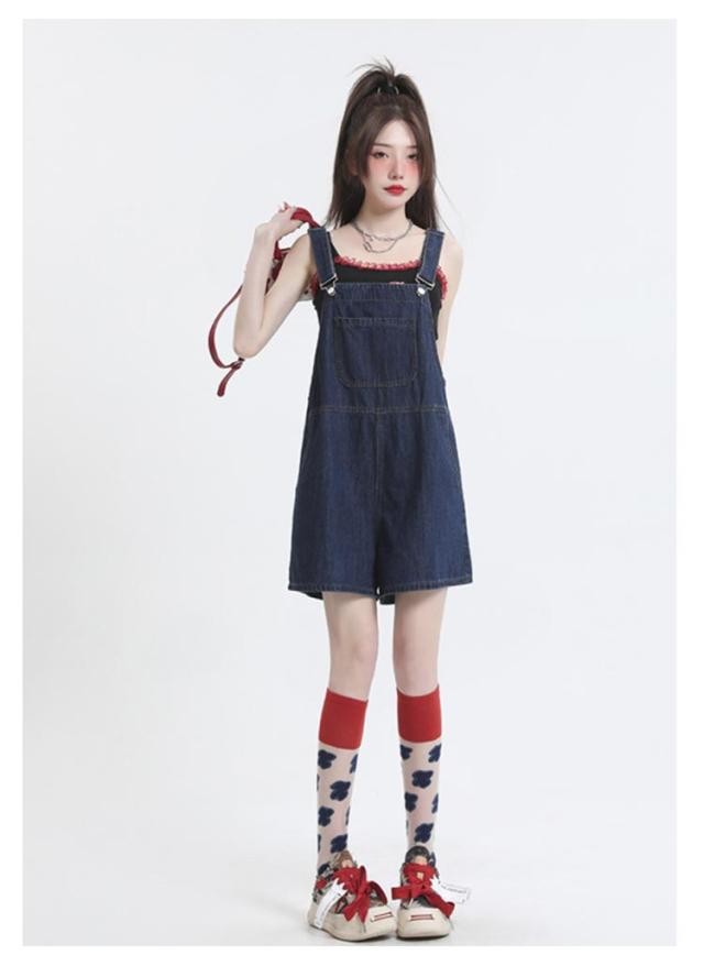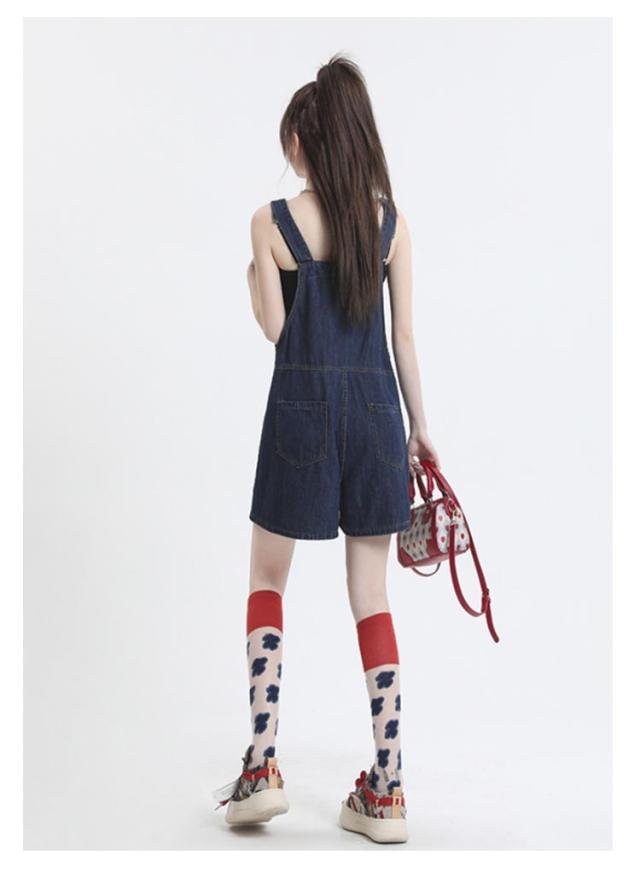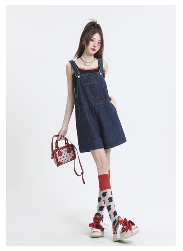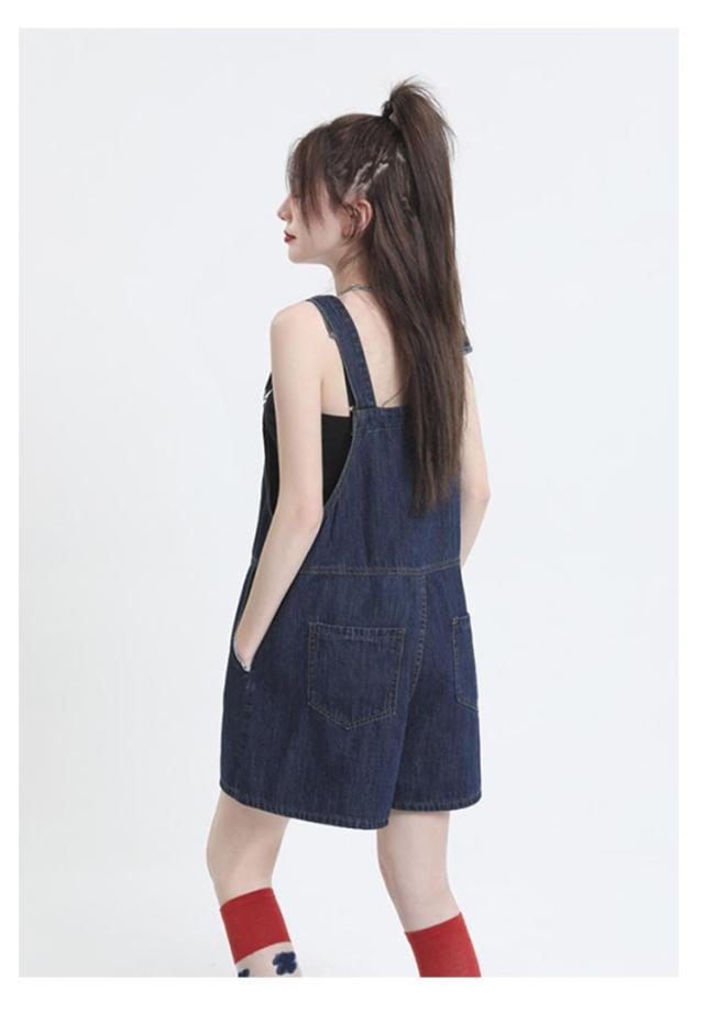 ショートパンツ ボトムス レディース デニム オーバーオール ハーフパンツ ゆったり カジュアル 無地 デニムパンツ ワイドパンツ 着痩せ 体型カバー サロペット 通勤 通学 女性