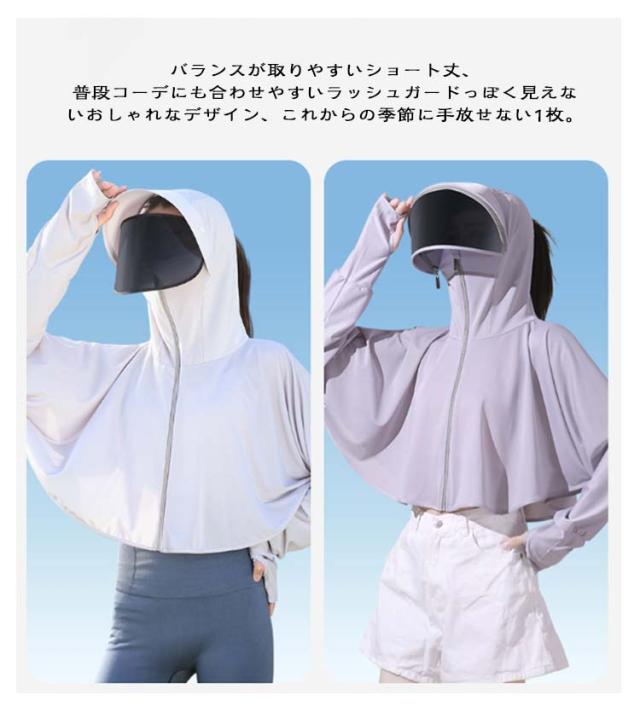 uvカット uv対策 ラッシュガード レディース パーカー 短丈 接触冷感 長袖 uvカット uvパーカー ラッシュパーカー 遮光 大きいサイズ 涼しい 水陸両用 おしゃれ ボレロ 短め 指穴 メッシュ 羽織 自転車 運転
