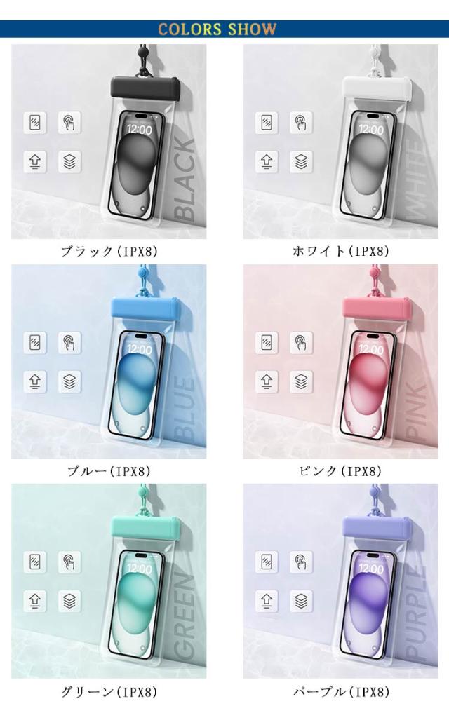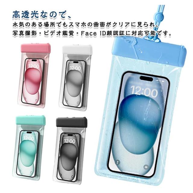| 4重保護システムで水深30メートルで30分間の防水テストで水だけでなく、ビーチで使用中の砂、アウトドアスポーツのほこりなどからデバイスを保護します。 高透光なので、水気のある場所でもスマホの画面がクリアに見られ、写真撮影・ビデオ鑑賞・Face ID顔認証に対応可能です。 便利なネックストラップでスマホを落としたり、なくす心配なくプールや海での貴重品管理やアウトドア、ダイビング、野外フェス、海やプール、砂浜、自転車、レジャー、キャンプ、登山、釣り、スキー、スノボ、サーフィン、入浴、風呂など、様々な場面で水気を気にせずにスマホが使えます。 ご注意:ご使用の前に必ず携帯の代わりにティッシュをケースに入れて、防水ケースは水没して30分間の防水テストを行ってください。 | |