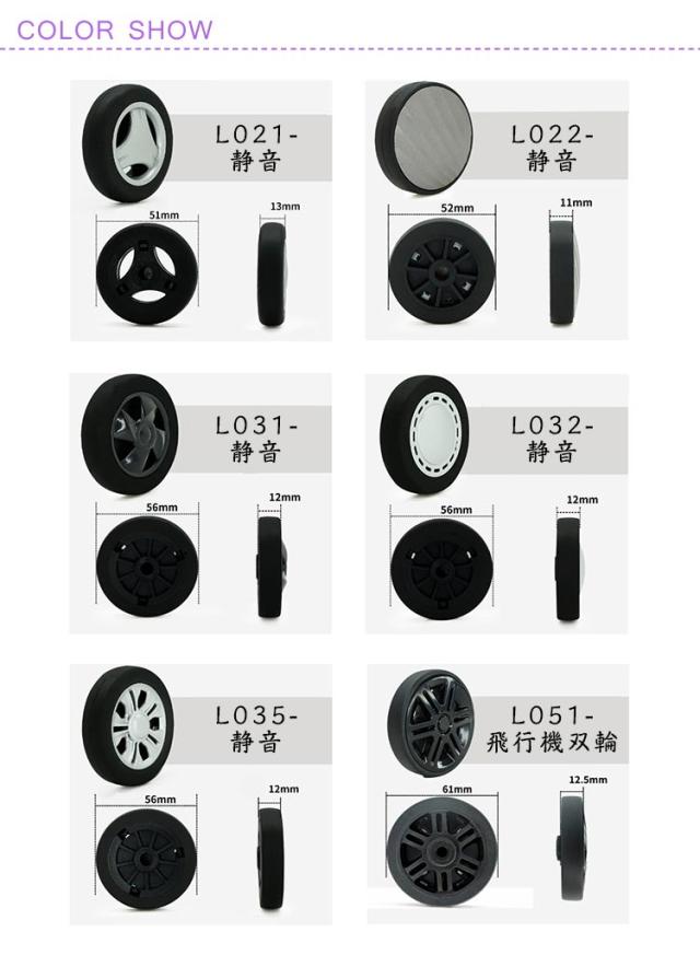 | 色 | L021-静音 L022-静音 L031-静音 L032-静音 L035-静音 L051-飛行機双輪 L052-飛行機双輪 L053-飛行機双輪 L054-飛行機双輪 L055-単輪用 L056-単輪用 L057-単輪用 L059-単輪用 L060-単輪用 L116-単輪用 L129単輪用 L071-飛行機双輪用 L073飛行機双輪用 |