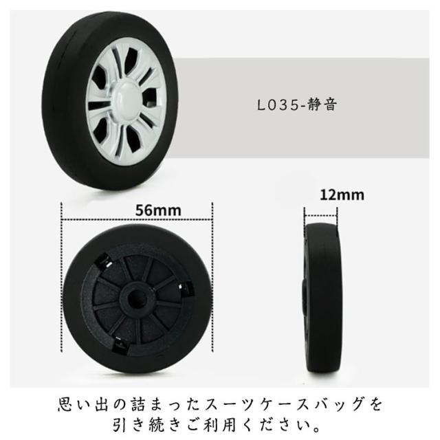 | スーツケース・ショッピングカート・キャスなどの車輪補修用、キャスター取替え用タイヤキット。 動きが悪くなったり、ゴム部分が劣化、破損したタイヤをDIYで自分で交換。 ご購入前には必ずお持ちのキャスターサ イズをご確認ください。 ご自身でこちらのキットで交換すればとっても経済的。 思い出の詰まったスーツケースバッグを引き続きご利用ください。 | |