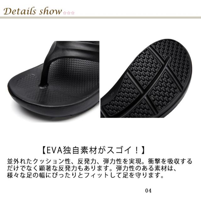 | 季節を問わず、春夏秋冬、履ける人気ビーチサンダルです 【とにかく軽い!】 まるで空気を履いているかのような感覚すら覚えるサンダル。素足にしっとりとフィットし、足を包み込みます。 【EVA独自素材がスゴイ!】 並外れたクッション性、反発力、弾力性を実現。衝撃を吸収するだけでなく顕著な反発力もあります。弾力性のある素材は、様々な足の幅にぴったりとフィットして足を守ります。 【アーチが気持ちいい!】 足のアーチ型を支えるカーブが特徴。深めのかかとに中央のアーチが中足骨をサポートします。薄く弧を描いているヒールは、かかとへの圧力を軽減し、足のアーチを支える効果を倍増させます。 【おうち時間に足リラックス】 外履きは勿論のこと、おうち時間が増えている今、内履きとして人気が高まっています。足元は開放的に気持ちよく。家事や仕事も捗ります。 【シーンを問わず日常に】 豊富なカラーとデザインで、ビーチやスポーツシーンだけでなく日常生活に溶け込むサンダルである。その履き心地を一度体験してみてください。 | |