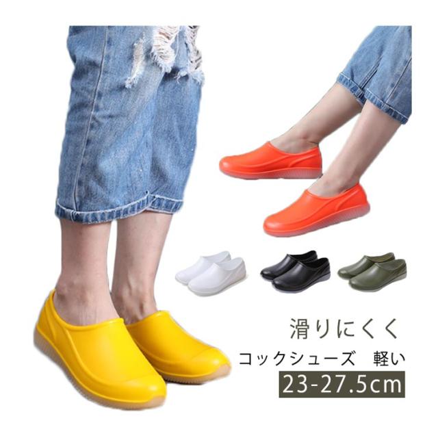 | コックシューズ 23-27.5cm 滑りにくく 軽い 滑りにくさを追求。 調理場の水・油に対して「滑りにくさ」を追求した特殊デザインの靴底を使用。 軽量設計で疲れにくい。 軽量で疲れにくく、靴底は履き心地の良いクッション性。 汚れても拭き取れる!ソールを外して丸洗いOK! | |