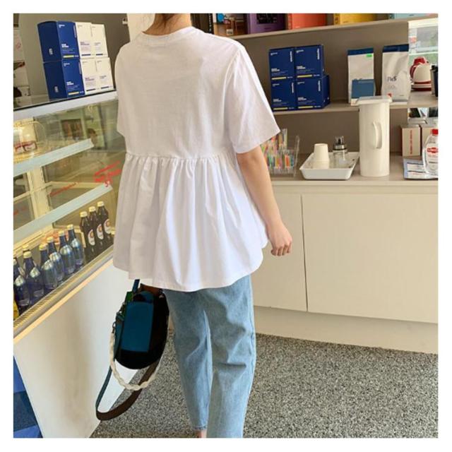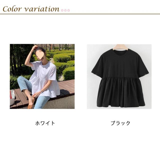 フリル バックフリルカットソー カットソー ブラウス ホワイト ペプラム ペプラムトップス バックフリルカットソー Tシャツ トップス ギャザー 後ろ 半袖 無地 半袖Tシャツ ラウンドネック トップス レディース