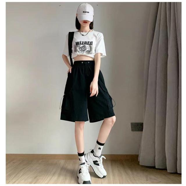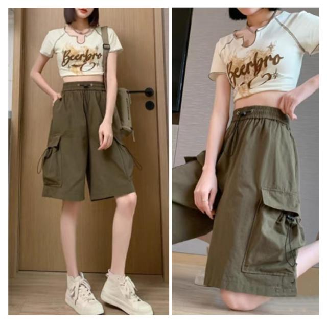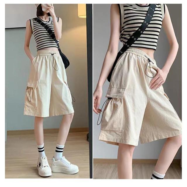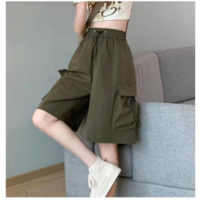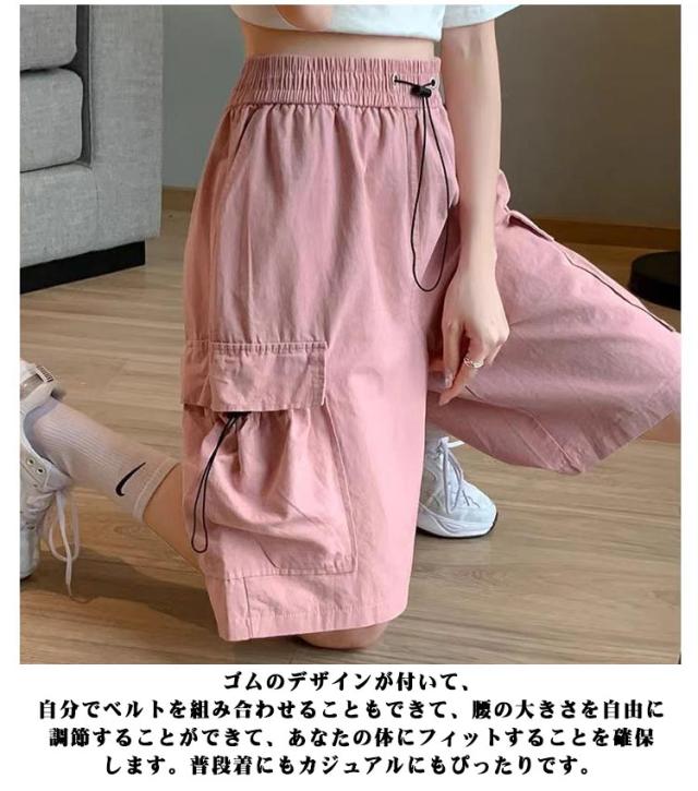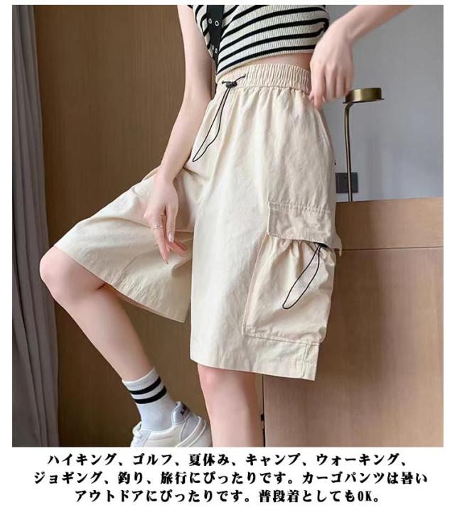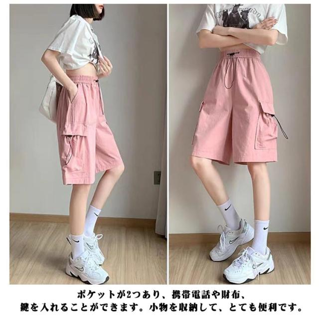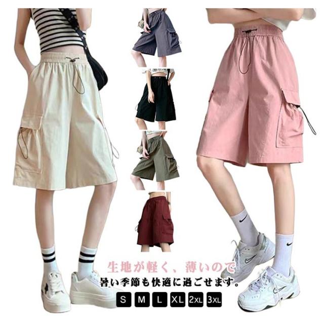 レディース カーゴパンツ カーゴパンツ 夏 薄手 ショートパンツ 無地 半ズボン ウエストゴム 5分丈 ボトムス ワイドパンツ ゆったり ポケット付き ショーパン 通気 ハーフパンツ スポーツ ランニング 通勤 普段着 多機能