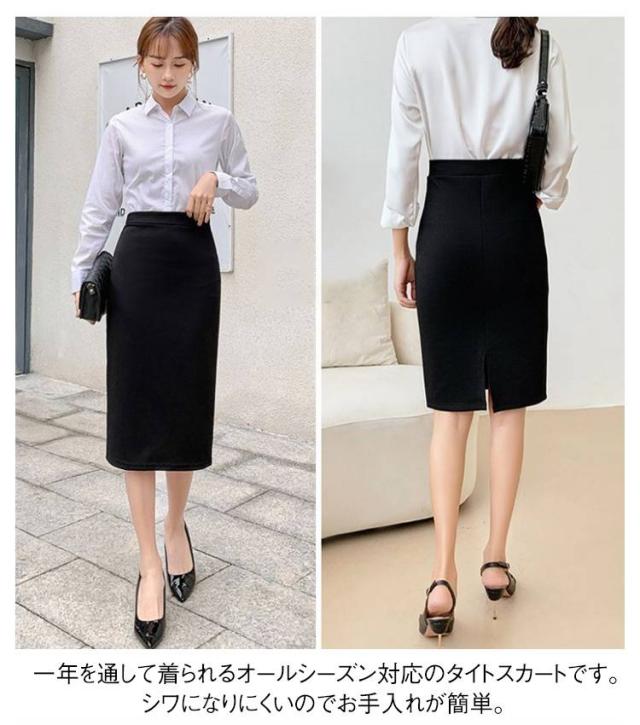 ひざ丈 事務服 リクルート レディース スカート タイトスカート スリット入り スカート 制服 3種類 膝丈 ウエストゴム ストレッチ ビジネス ユニフォーム 黒 事務服 企業 フォーマル オフィス 仕事用 通勤 面接 スリム