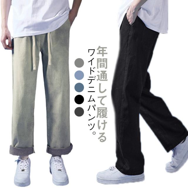 ロング丈 パンツ ストレート 長ズボン デニム ワイド 全5色 無地 メンズ ワイドパンツ 秋 デニムパンツ ゆったり 春 Gパン ワイドレッグ ズボン ワイドレッグ シンプル ストレートパンツ ジーンズ ズボン メンズ ロングパンツ おしゃれ
