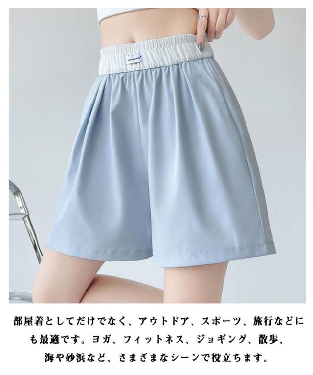 レディース ショートパンツ 涼しい 楽ちん 速乾 ワイド 接触冷感 短パン ハイウエスト スポーツ 半ズボン 5分丈 薄手 登山 ウエストゴム カジュアル ゆったり 夏 無地 無地 ワイド 薄手 部屋着 アンダーウェア シャリ感 大人