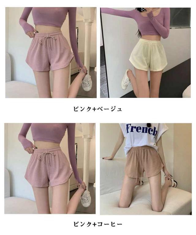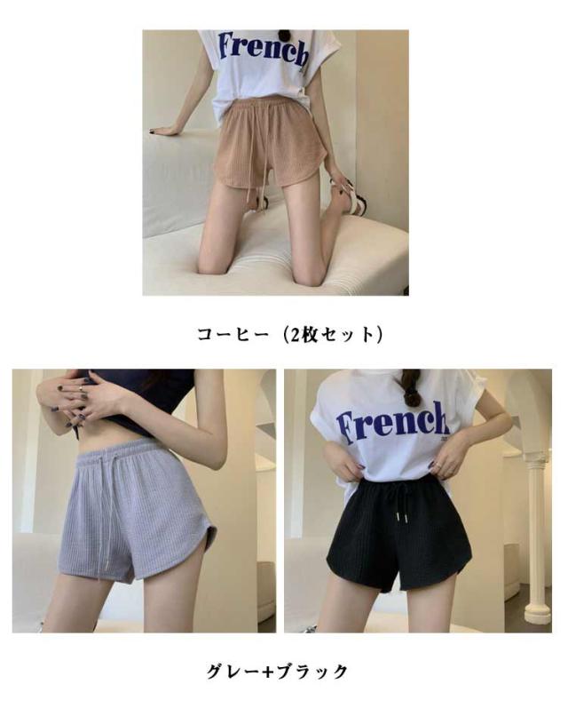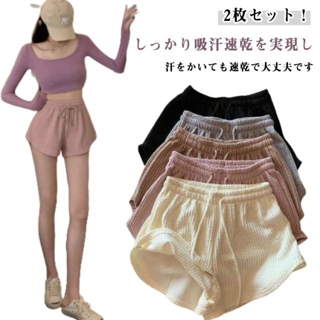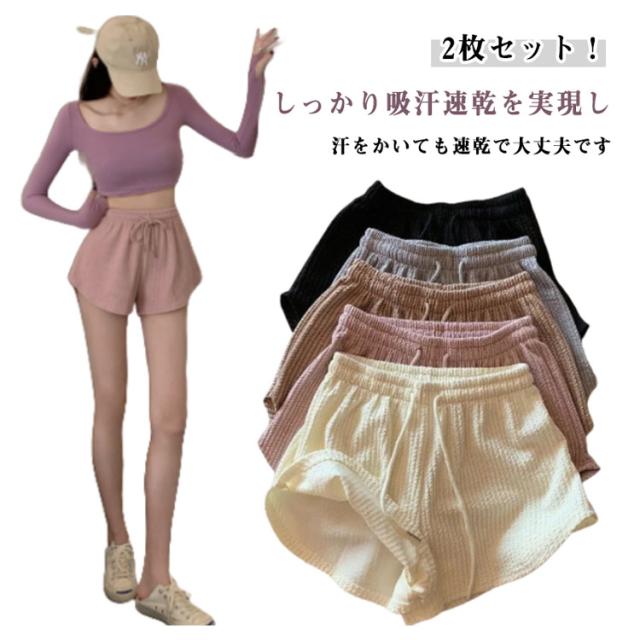 レディース 2枚セット! 夏 ゆったり 短パン スポーツ ショートパンツ 伸縮性 春 ルームウェア おしゃれ かわいい ワッフル スウェットパンツ 半ズボン らかい 通気性 部屋着 吸汗 速乾 ヨガ 2枚セット! ランニング