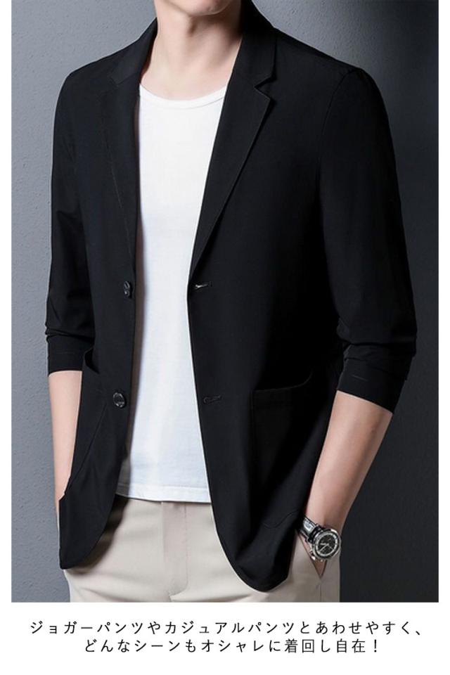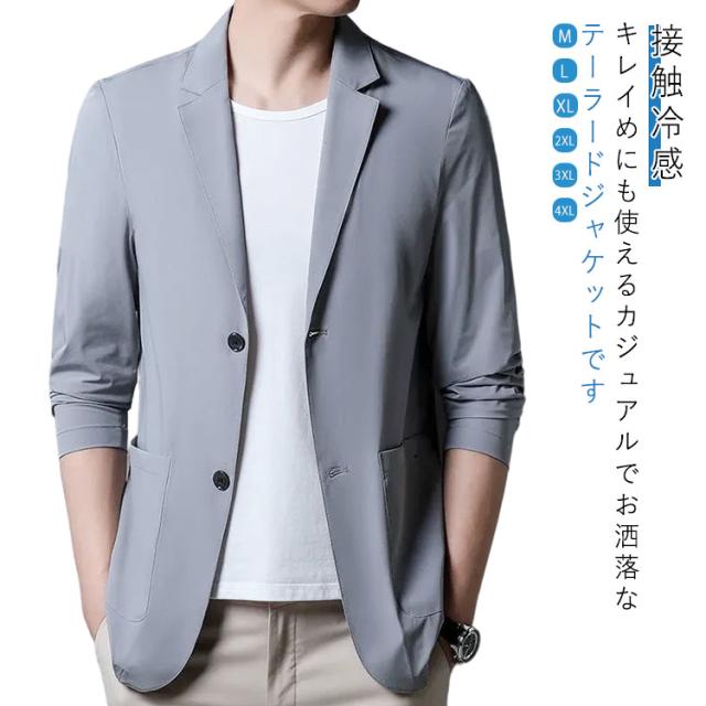 接触冷感 サマージャケット アイスシルク 春夏秋カジュアル ジャケット メンズ カーディガン ビジネス ジャケット ブレザー 裏地なし 薄手 テーラードジャケット 軽い 無地 UVカット 日焼け対策 ストレッチツイル 洗える 大きいサイズ 通勤 サマージャケット 軽量