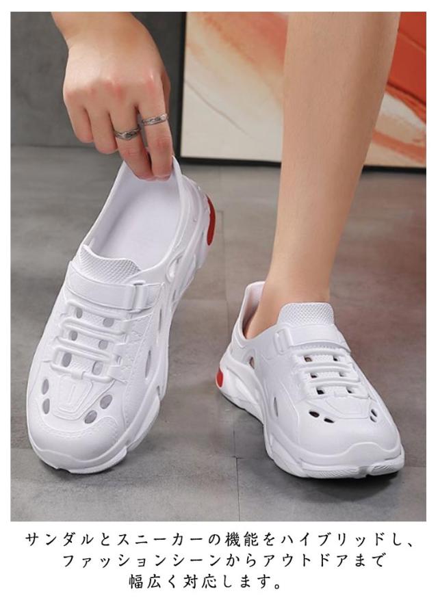 | ・サンダルとスニーカーの機能をハイブリッドし、ファッションシーンからアウトドアまで幅広く対応します。 ・足に負担がかかりにくい軽量設計。 ・足元が蒸れにくく、快適な靴内を保てます。 | |