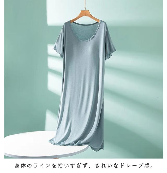 カップ付き カップ付き マキシワンピース ルームウェア ロングTシャツ ワンピース 半袖 夏 ワンピース パジャマ ロング丈 無地 パジャマ 薄手 可愛い かわいい ランジェリー 大きいサイズ 春 夏 カップ付き 無地 シンプル