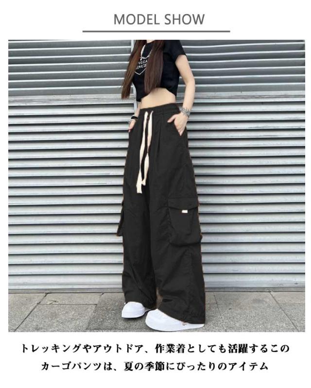 ワイドカーゴパンツ ロングパンツ ダンス用 ヒップホップ カーゴパンツ ゆったり レディース 長ズボン カーゴパンツ ボトムス ポケット付き ダンス ストリート系 着痩せ 秋 冬 春