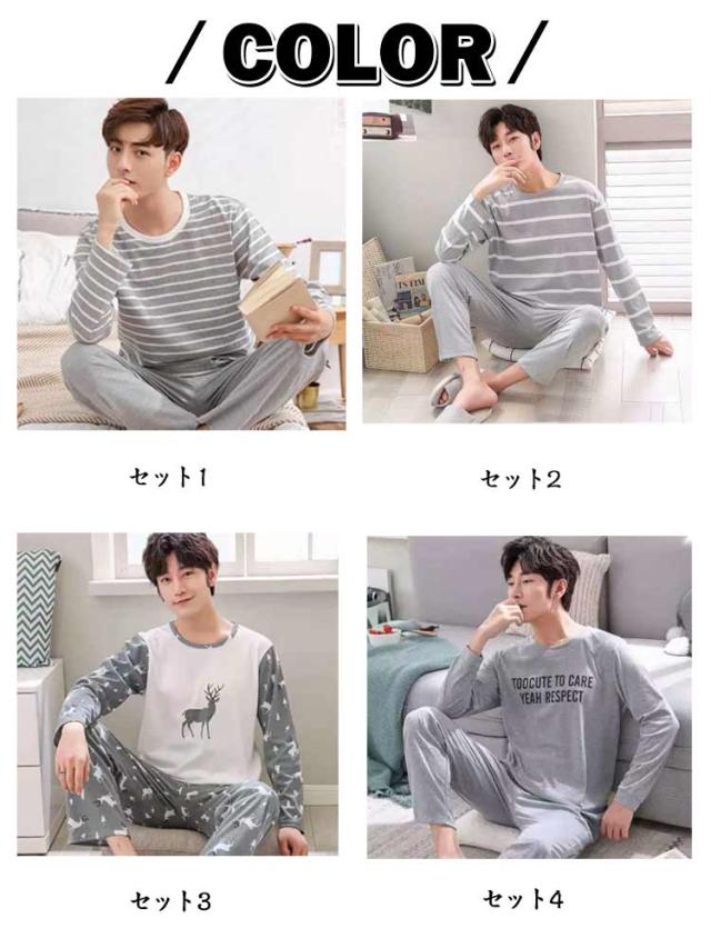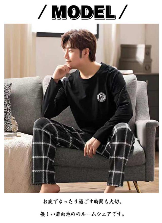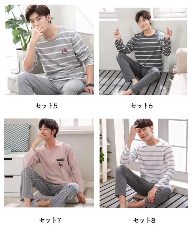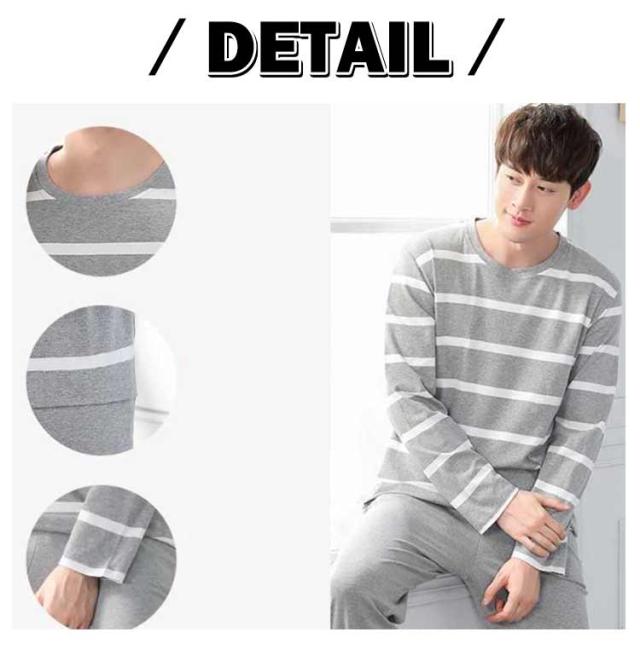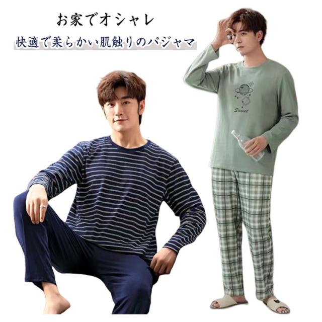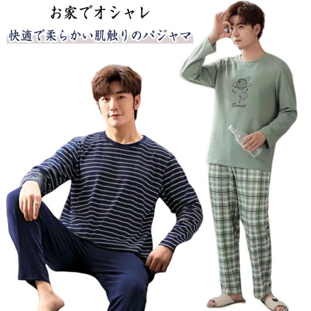 ルームウェア プルオーバー メンズ 長ズボン ボーダー柄 春 秋 パジャマ パンツ シンプル 上下セット ナイトウェア セットアップ 寝巻き 柔らかい 寝間着 長袖 父の日 ギフト 敬老の日 プレゼント パジャマ リラックス トップス