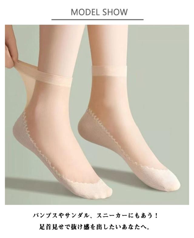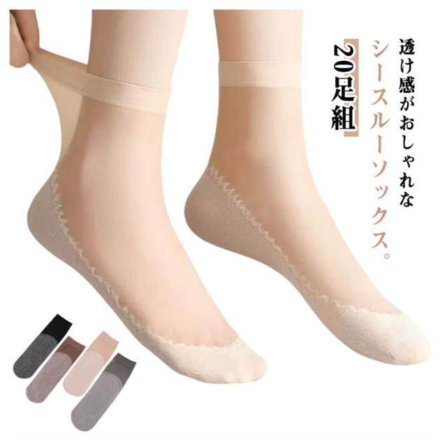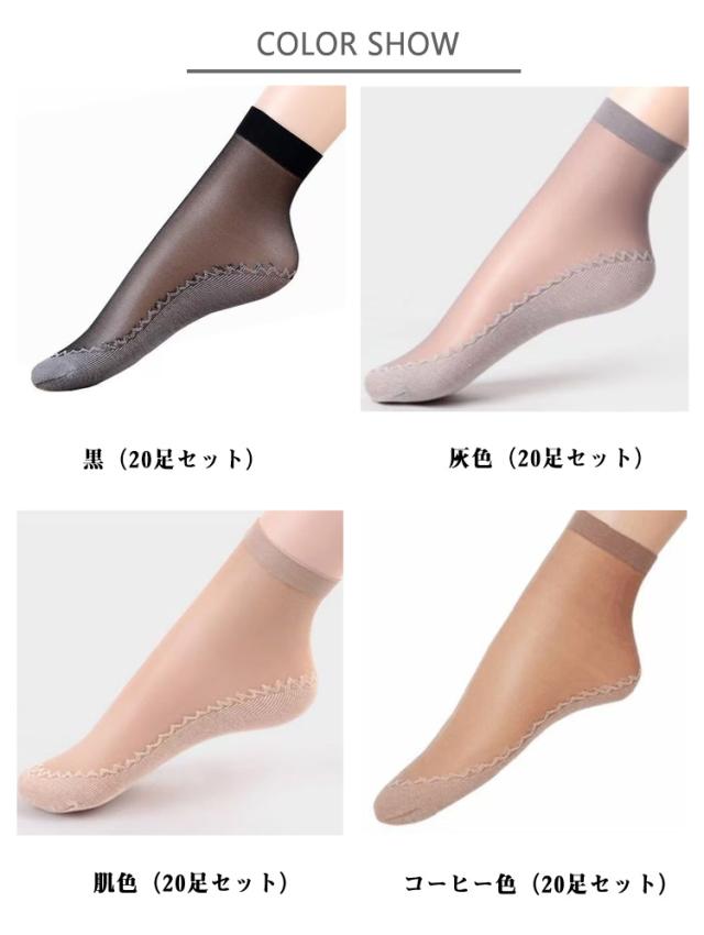 おしゃれ ショート シースルーソックス 滑り防止 くつした レディース くつ下 靴下 ストッキング靴下 パンプス 20足セット 薄手 かわいい 20足セット ヒール 黒 ベージュ グレー 蒸れない靴下