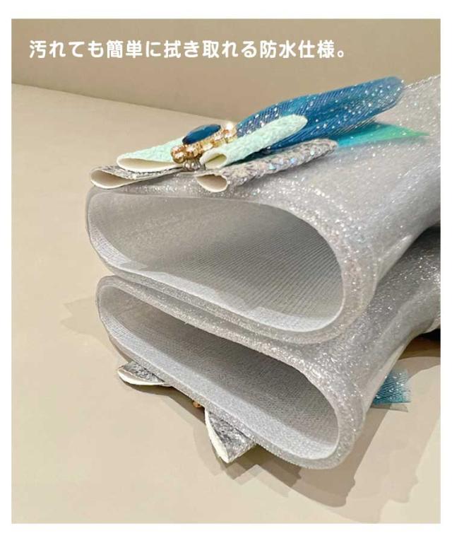 | プリンセスの靴みたいなキラキララメのレインシューズです。 ふんわり可愛いパステルカラーに。 大きめのリボンがポイント☆ 雨の日でもしっかり止まる滑り止め。 汚れても簡単に拭き取れる防水仕様。 雨の日でも気持ちが楽しくなります。 | |