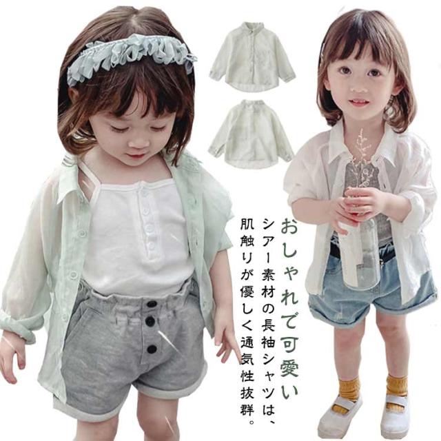 ベビー服 子供服 シアーシャツ シャツ 長袖 女の子 シアーシャツ 可愛い トップス ブラウス キッズ服 羽織り 小学生 シースルー 透け感 ガールズ 小学生 おしゃれ 薄手 紫外線対策 春夏 UVカット