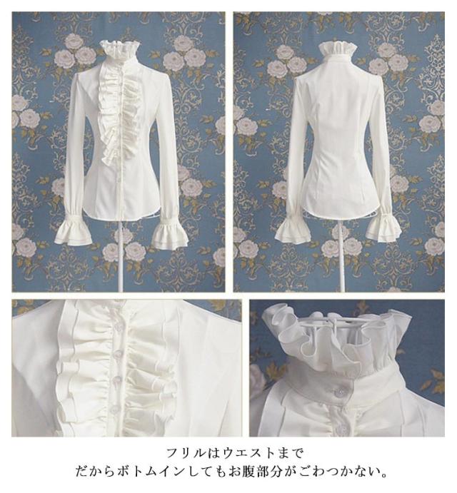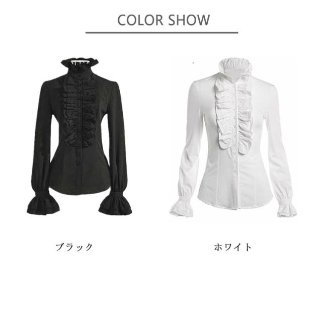 ゴスロリ 無地 シャツ ブラウス ゴスロリ ブラウス フリルシャツ 長袖 スタンドカラー フリルブラウス 長袖シャツ 長袖ブラウス フォーマル おしゃれ ロリィタ フリルカットソー 姫袖 大きいサイズ ホワイト ブラック トップス 重ね着