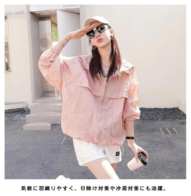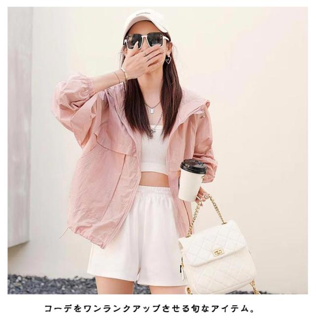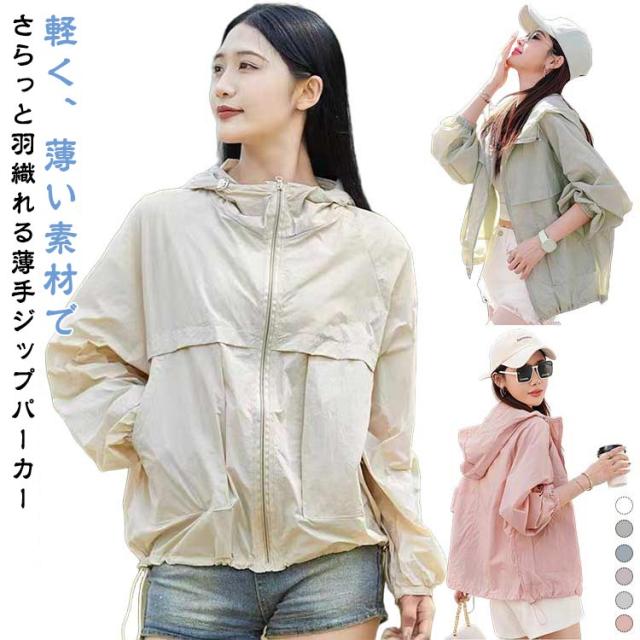 マウンテンパーカー ブルゾン 長袖 アウター レディース upf50+ ライトアウター パーカー uv uv パーカー パーカージャケット パーカー マウンテンパーカー フード付き 薄手 ショート丈 パーカー ジップアップ ゆったり おしゃれ 体型カバー 防風 春夏