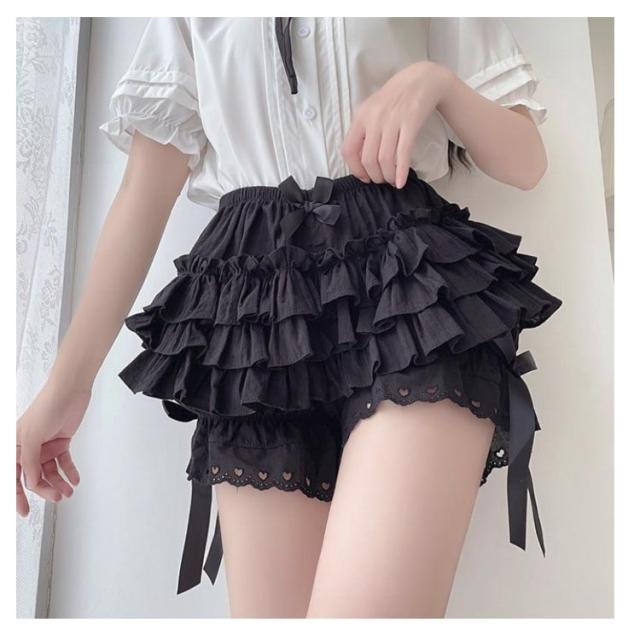 ペチパンツ リボン かぼちゃパンツ 見せパンツ フリル ボリューム ロリータペチコート ショートパンツ インナーパンツ 普段着