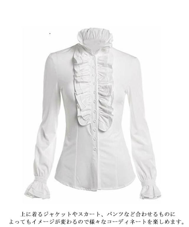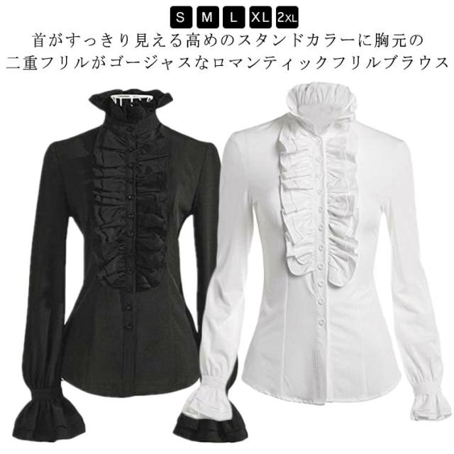 ブラウス 長袖 長袖シャツ ゴスロリ レディース フォーマル おしゃれ ゴスロリ ブラウス フリルシャツ スタンドカラー 長袖ブラウス 無地 姫袖 ロリィタ フリルカットソー シャツ 大きいサイズ ホワイト ブラック トップス 重ね着