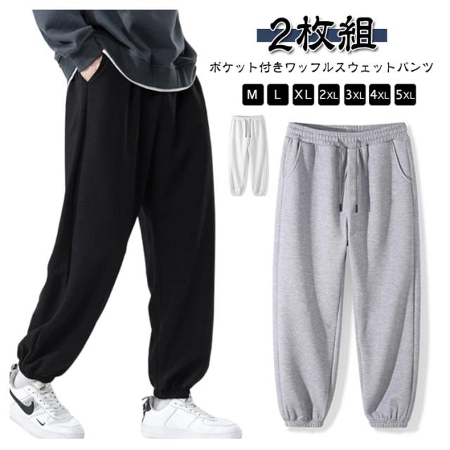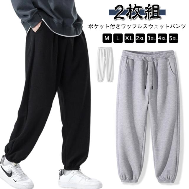 | 【ポケット付きワッフルスウェットパンツ】【M〜5XL】【2枚組】 タウンユースとして着回しの利く、スポーティな印象に。 ジムやスポーツ時にもトレーニングウェアとして使えるスウェットパンツ。 着心地が良いので、部屋着やパジャマなどリラックスしたい時にもおススメ。 シンプルなデザインなので幅広いシーンで活躍するアイテムです♪ 両サイドに配置されたポケットは、機能性とスタイルを兼ね備え、小物の収納にも最適。 | |